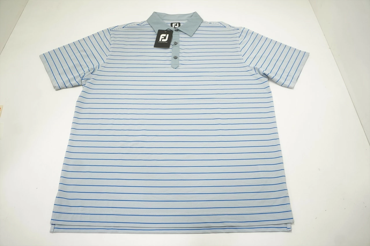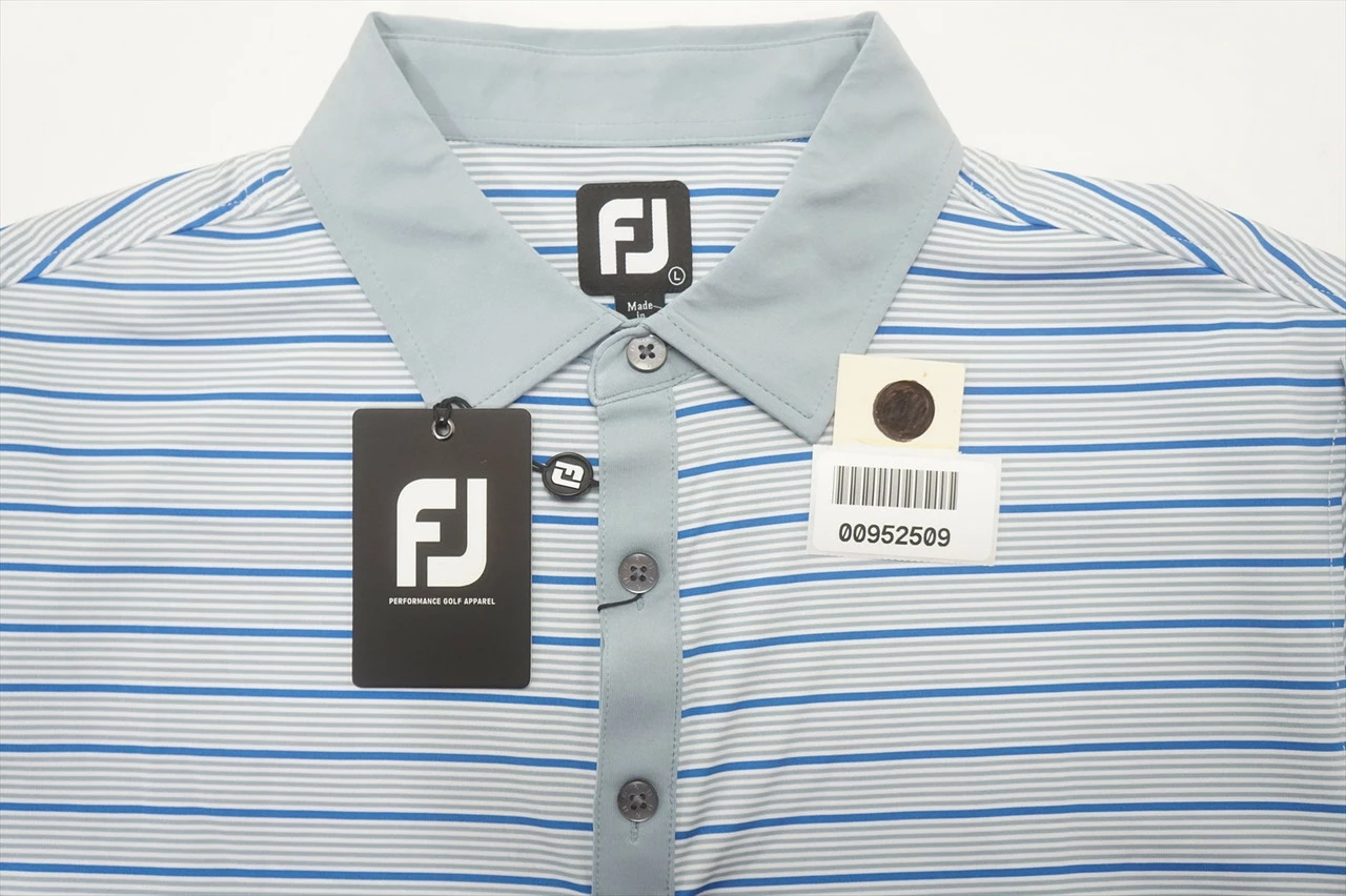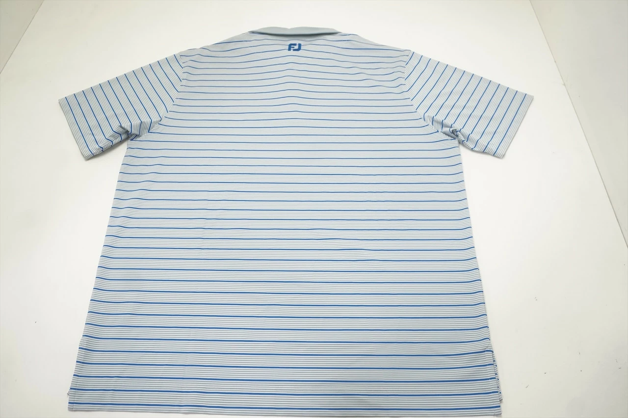 New Footjoy Accented Stripe Lisle Polo Mens Large Dove Grey/White/Roval 663B